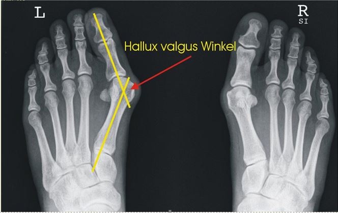 Der Musculus abductor hallucis zieht die Großzehe in die Valgusstellung (von der Körperachse weg) (siehe dazu Abb. 1). Eine Verkürzung des lateralen Seitenbandes und ein Überdehnen des medialen Seitenbandes fixieren die Fehlstellung. Eine Knorpelschädigung ist die Folge der inkongruenten Gelenksfläche. Das Köpfchen des Os metatarsale I weicht nach medial ab und verliert den plantaren (fußsohlenwärts) Kontakt zu den Sesambeinen. Dadurch wird das Sehnenungleichgewicht weiter verstärkt. Eine Kallusanlagerung medial am Köpfchen des Os metatarsale I mit Pseudoexostosenbildung verstärkt das prominente Großzehengrundgelenk noch weiter. Die Schuhdruckproblematik nimmt dadurch weiter zu.